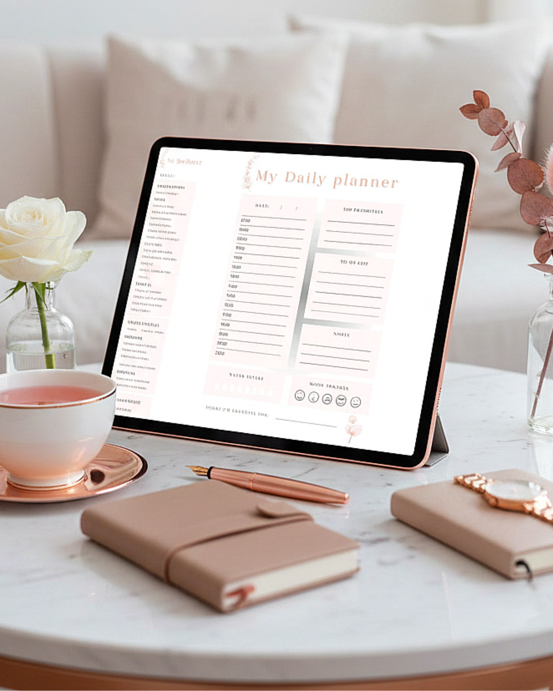 Designed for women who love clarity, calm and intentional living, this minimalist daily planner helps you organize your entire day while staying aligned with your goals, mood and well-being.