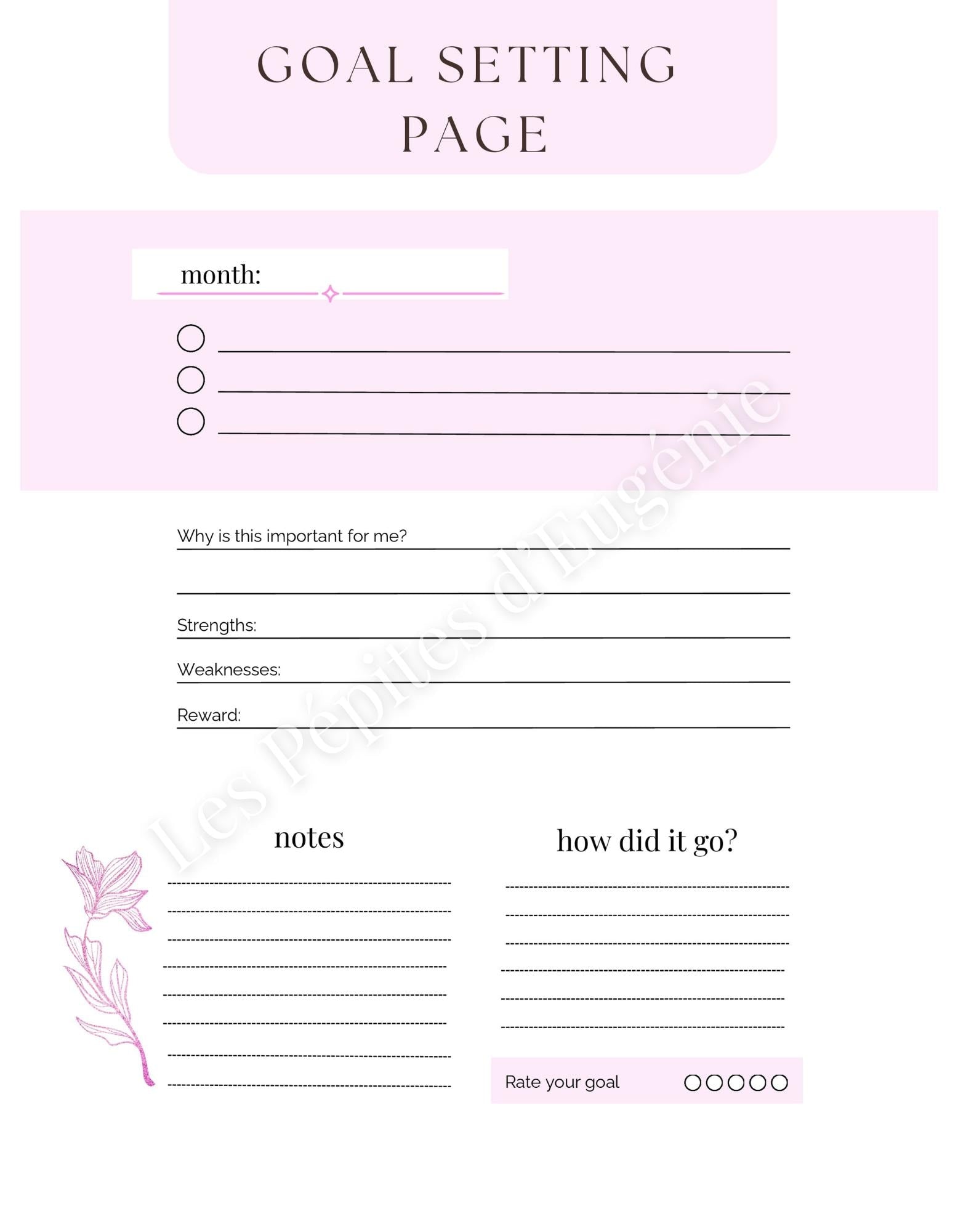 📦 WHAT YOU WILL RECEIVE You will receive 5 Goal Setting Pages, each with the exact same layout in different colors: