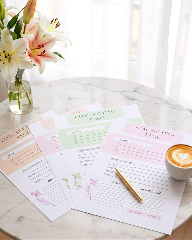 ✨ This elegant Goal Setting Bundle is designed to help you set clear intentions, stay focused and track your progress with motivation and clarity. Perfect for anyone who wants to take control of their goals with a clean, feminine and minimal design.